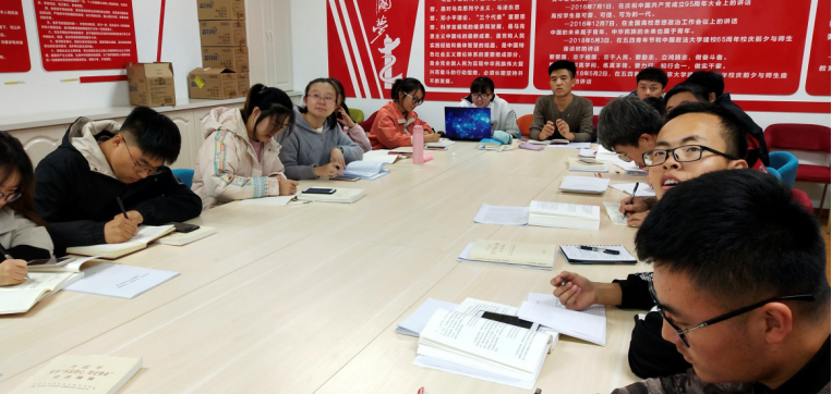 第二阶段是马丰元同志带领大家学习“落实立德树人的根本任务”。首先马丰元同志阅读了关于立德树人的有关文献,文献中讲到:国无德不兴,人无德不立。在中国特色社会主义进入了新时代的历史方位下,借鉴中华民族优秀教育传统,重申立德树人的指导思想,赋予其符合时代发展和当代国情的内涵,是民族复兴语境下中国教育发展的必然要求。在他读完文献时,虎攀智同志提出了一个有深刻意义的问题:“培养什么样的人?怎样培养人?为谁培养人?”大家马上又进入了讨论的热潮。各个党员同志开始发表自己的观点。丁永发同志说:培养什样的人?培养社会主义接班人,培养爱国、敬业、诚信、友善的人。从个人层面讲,提高当代大学生的责任心,提高自身素质,以身作。从国家层面,改变机制做引导,弘扬传统文化,深化教育体制改革。许弟兵同志指出:怎样培养人?要科研育人,服务育人,管理育人,教书育人。大学不仅仅会带来知识,更是一个平台,我们每个人要去展示自己,跟着导师去做科研,多做实践活动,丰富自己的阅历。